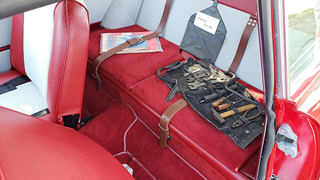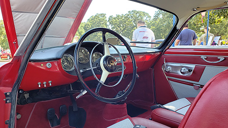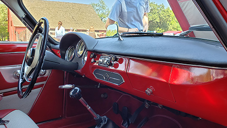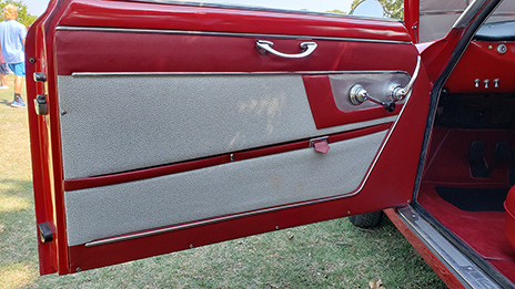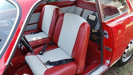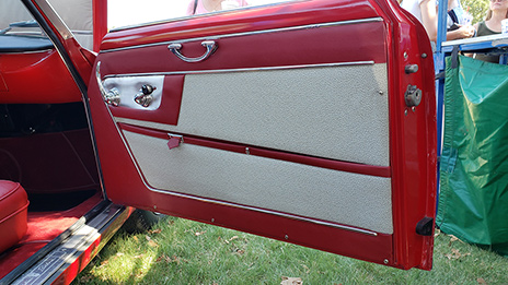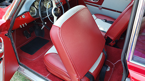 Isn't this car beautiful? The owner purchased it from Australia in 2014 and had it imported back to the US. We redid the entire interior, except for the gauge cluster and the carpet (which was already recent and in good condition). We used OEM reproduction materials, so it would look just like it did when it was made in 1960. Take a close look at the door panels and you'll see three different materials used. That metal-like material behind the door handles and window cranks... it's actually a fabric! The headliner, dash, and rear shelf were all redone too.