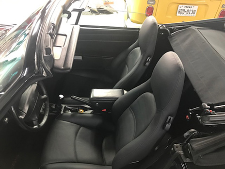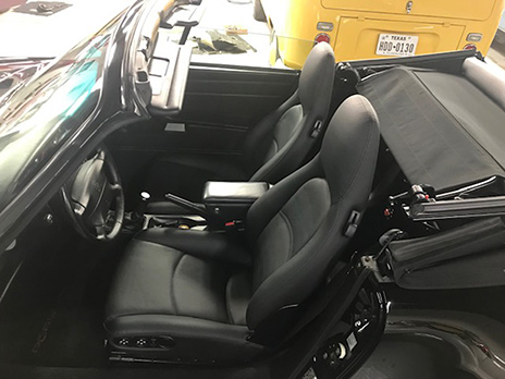 On this project we custom made the seat covers, designed to look just like the original pattern (they were not pre-made covers).