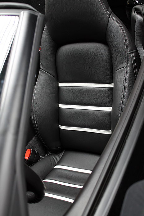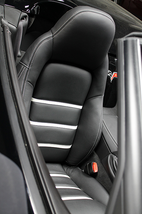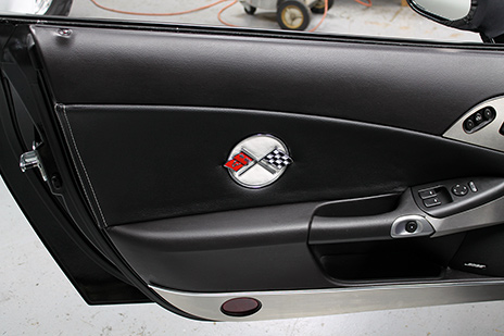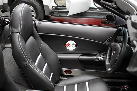 On this project we replaced the seat covers, door panels, shift boot, ebrake boot, and armrest cover with custom upholstery.