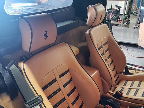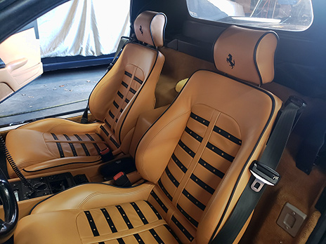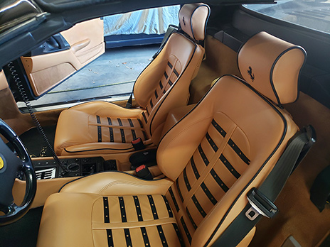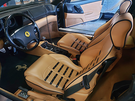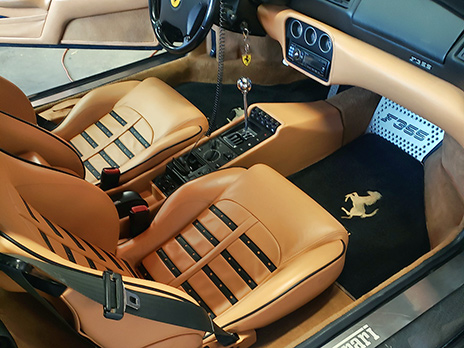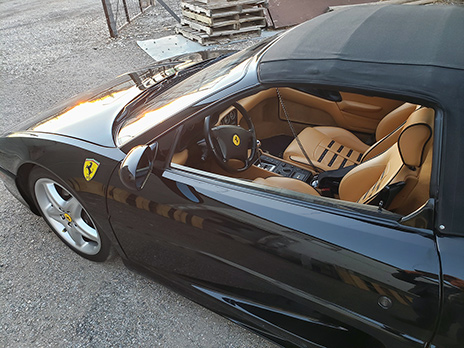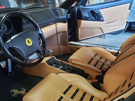 This project is similar to another black F355 Spider we worked on around 10 years ago. The biggest difference here is, this Spider received black piping on the seats when we replaced the leather upholstery.
