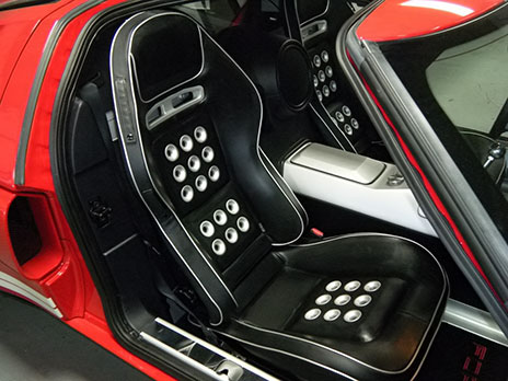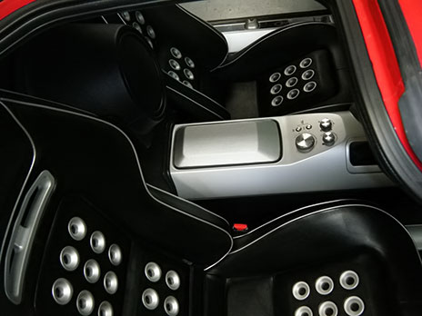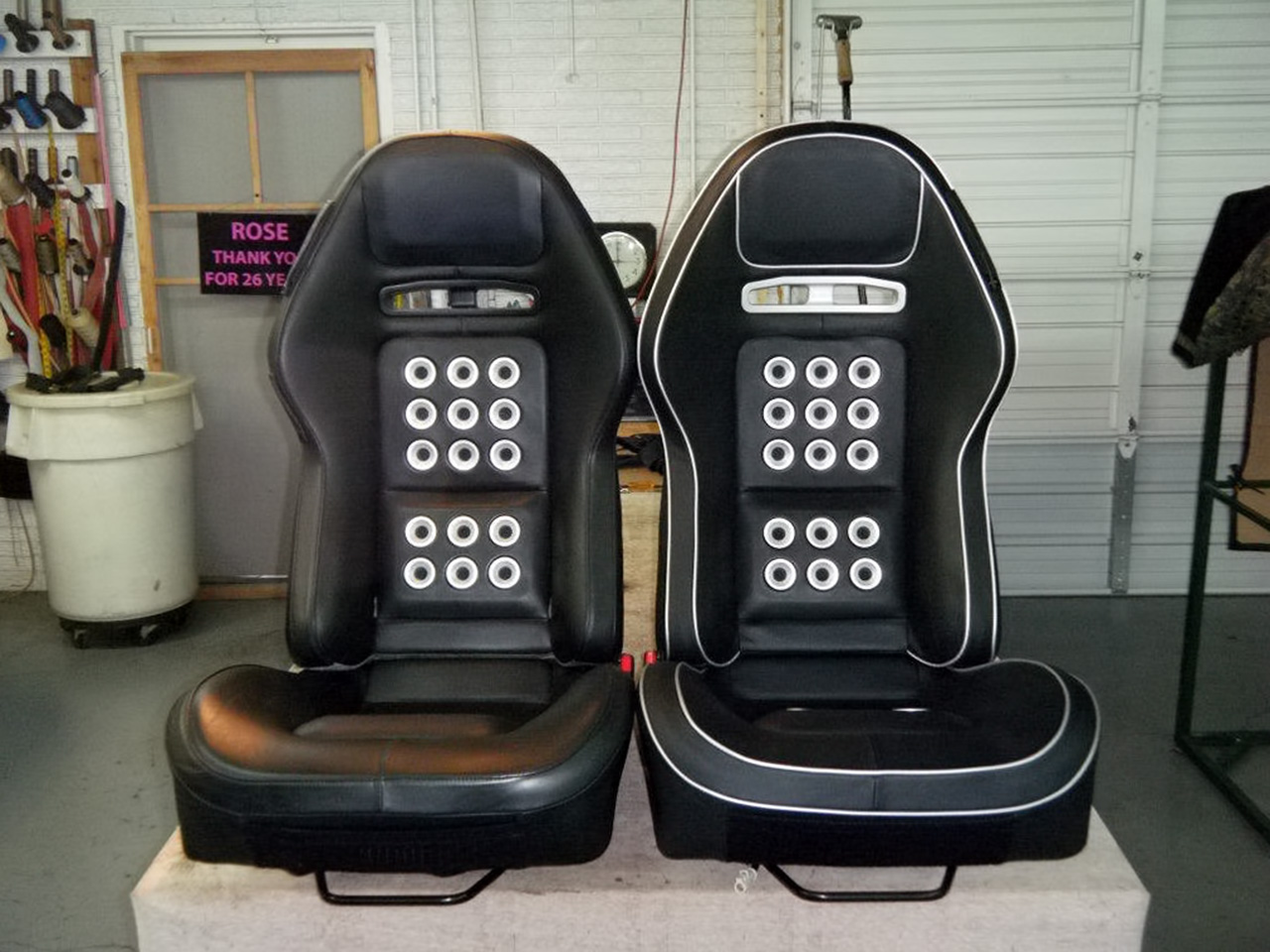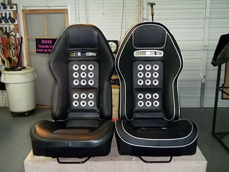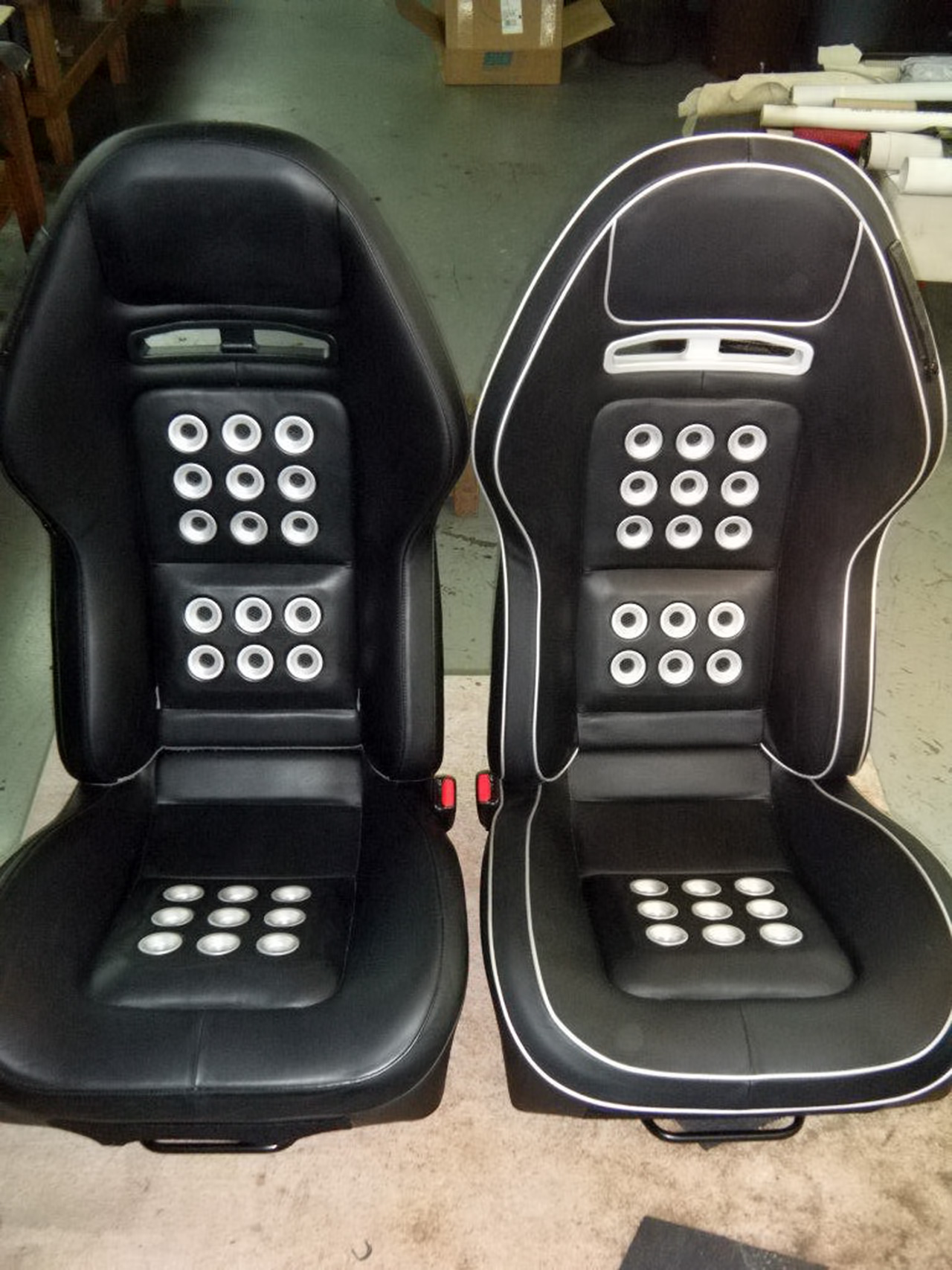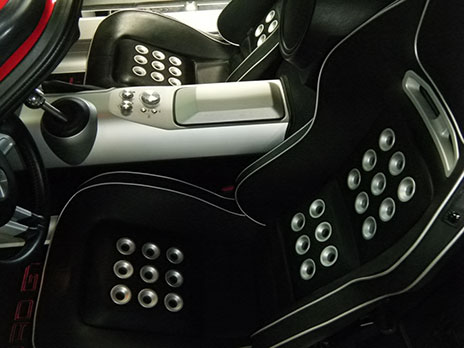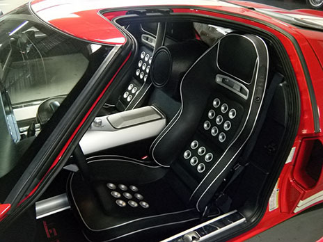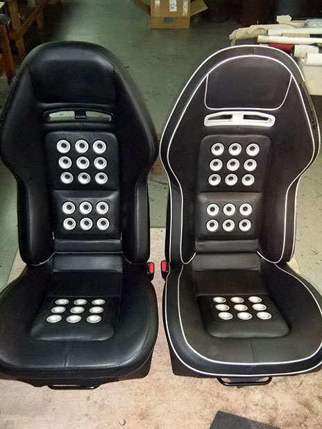 On this project we added silver piping to the outline of the seat cushions and backrests. We also covered the console lid in a matching silver material.
