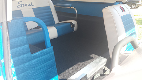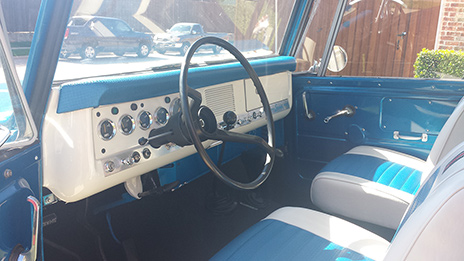 On this project we replaced all of interior complete with embroidered logos.This vehicle was the Class Winner for 60s and 70s Trucks at a 2017 show!